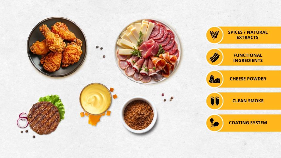 Natural spice flavoring products, adding both intense taste & scent. This range is applicable in any food system, providing a brilliant solution of cost effectiveness & avoiding traditional grinded spices inconveniences.