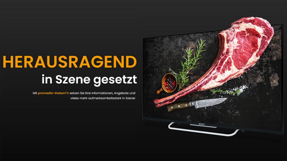 Das Digital Signage-Konzept von promedia-thekenTV ist speziell auf die Bedürfnisse von Fleischereien abgestimmt und unterstützt diese bei der zeitgemäßen Kundenansprache und Verkaufsförderung am POS.