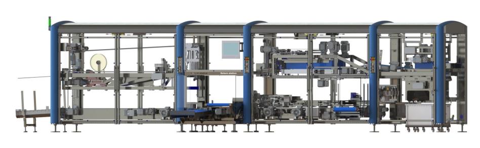 Das CP 201 Sammelpacksystem formiert und verpackt Beutel nach programmierbaren Mustern in Kartons. Durch 2 in Geschwindigkeit einstellbare parallele Bänder können die Beutel nach Wunsch um 90º gedreht werden, wonach sie auf ein Beutel-Sammelband gelangen. Auf diesem Frequenz gesteuerten Sammelband kann eine im Menü festzulegende Anzahl Beutel gruppiert werden (mit oder ohne partielle Überlappung). Diese gruppierte Beutelreihe wird anschliessend in den Sammelpacker geführt, der mit einem patentierten Beutel-Einführsystem und mit pneumatisch betätigten Falltüren eingerichtet ist . Das Beutel-Einführsystem besteht aus 2 vertikalen Bändern, die zum Herabsetzen des Beutelvolumens während der Übergabe zu den Falltüren in der Breite zu einander verstellbar sind . Ausser der seitlichen Einstellbarkeit können sich die beiden Bänder auch nach links oder rechts bewegen, so dass die Möglichkeit besteht, mehrere Beutelreihen positioniert in einer Lage in den Karton abzulegen. Das Sammelpacksystem ist zur raschen und problemlosen Einstellung der unterschiedlichen Beutel- und/oder Kartonmasse und Ablegemuster komplett programm-gesteuert. Die Systemteile sind in einem soliden und sauber ausgeführten Gehäuse mit höhenverstellbaren Füßen untergebracht.
