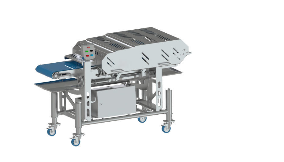 Dank eines ausgeklügelten Systems aus zwei Polymerbändern und Richtwalzen erreicht die Maschine eine gleichmäßige Produktdicke – individuell einstellbar nach Kundenwunsch. Sprühdüsen verhindern das Anhaften der Produkte, während das spezielle Bandprofil und die stufenlose Dickeneinstellung für einen reibungslosen Arbeitsablauf sorgen.