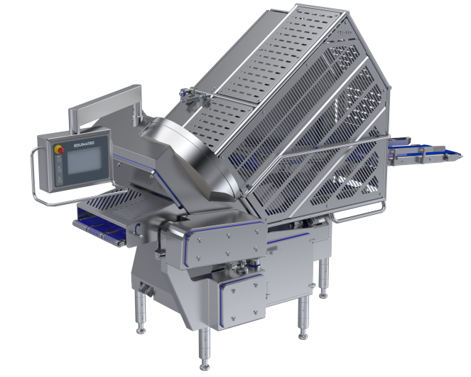 Die ST-300-Serie AUT besteht aus automatischen industriellen Schneidemaschinen mit automatischer Zuführung, mit oder ohne Systeme zum Zwischenlegen und Wiegen geschnittener Produkte.