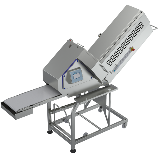 11. System zur Abgabe geschnittener Stapel auf ein 1365 mm langes Förderband.