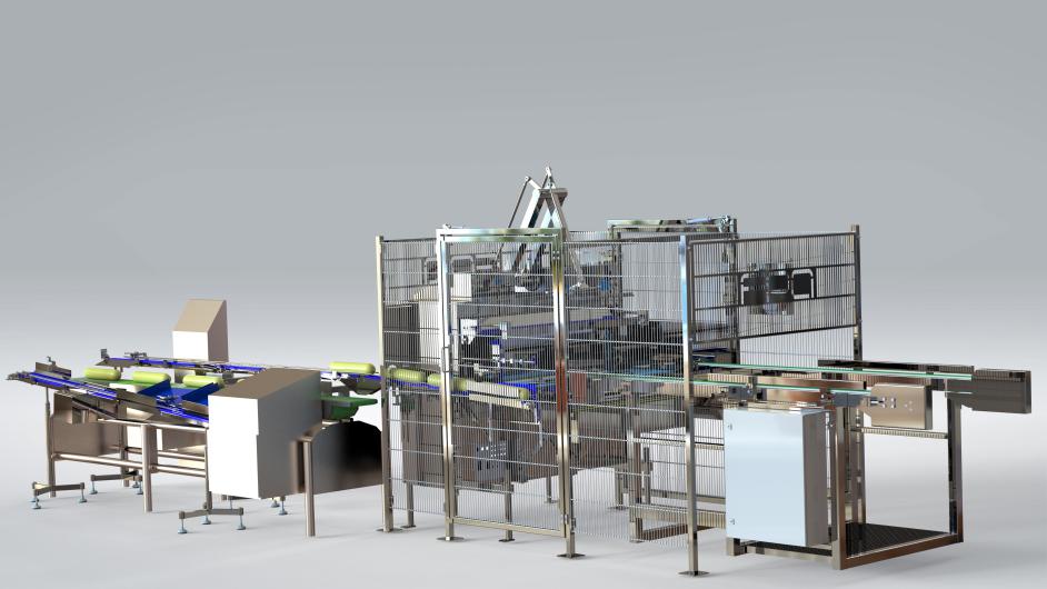 Diese Anlage wurde im Juli 2021 für das automatische Vereinzeln und Verpacken der Edelsalami aus dem Rauchwagen in die Schlauchbeutelanlage realisiert.