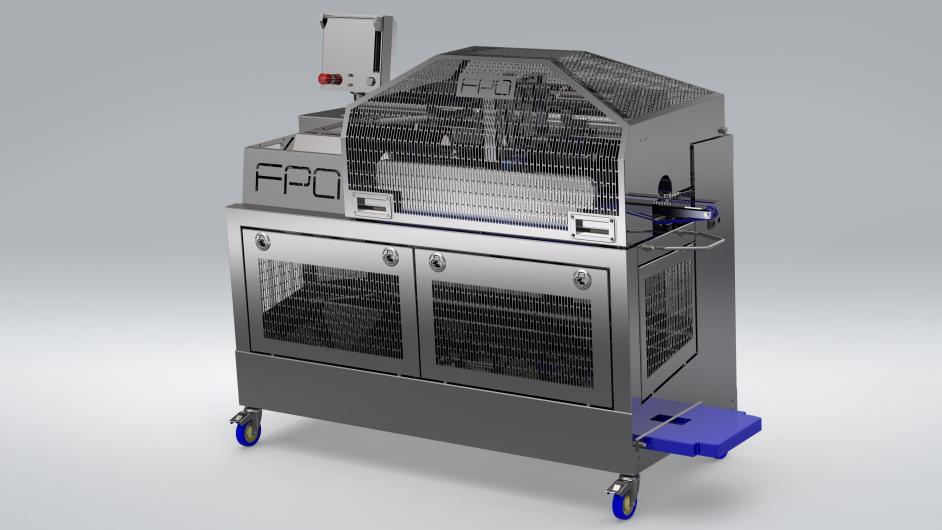 Der FPA PortCut 80 für SB-Ware teilt Roh-, Brüh- und Kochwürste. Auf der Anlage werden Produkt-größen vom Kaliber 35-80 mm bei einer Länge von 180 — 400 mm geschnitten.