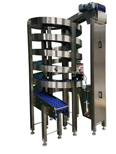 Die Serie umfasst drei Modelle: JPFD kurvengängige Förderer, JPFD Spiralförderer und JPFD Switch Verteilförderer.
