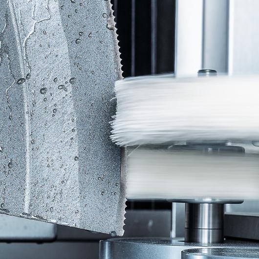 Darüber hinaus ist die A 95 ist bestens qualifiziert zum Neuverzahnen und Nachverzahnen von Slicermessern. Sind die Messer erstmalig auf der A 95 verzahnt, findet die Maschine immer den richtigen Startpunkt in der vorhandenen Teilung. Eine Vielzahl unterschiedlicher Zahnformen, z. B. spitz, hohl oder wellenförmig, sind im Speicher abgelegt und können sehr einfach daraus abgerufen werden.
