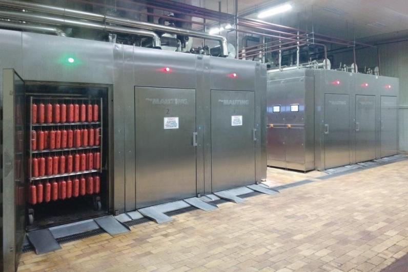 • Die Kochkammern ermöglichen den automatischen thermischen Bearbeitungsprozeß durch Kochen durchzuführen, auf Kundenwunsch auch durch Braten.