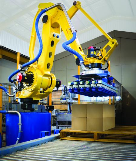 Unser Depalettierer ist der erste der Welt, der Produkte unterschiedlicher Größen in beliebigen Stapelmuster ohne Neuprogrammierung depalettieren kann.