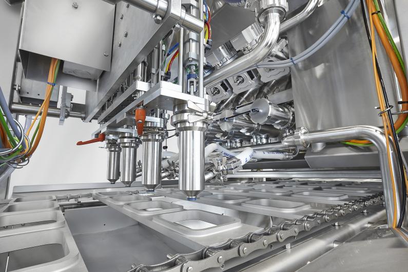 Das modulare Baustein-Konzept der Komplettlinien ermöglicht individuelle Ausstattungskombinationen für unterschiedlichste Marktanforderungen und verschiedene Produkte wie z.B. Butter, Margarine, Joghurt, Frischkäse, Feinkostsalate, Fertigmenüs und Rohkostsalate auch mit großen stückigen Anteilen.