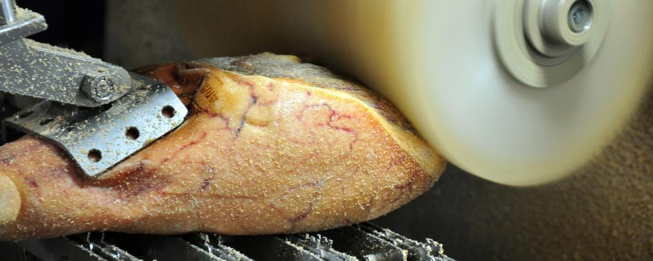 An operator places the ham on a conveyor belt, the ham advances towards the work tunnel, with a “step-by-step” system, reaching the various work stations: