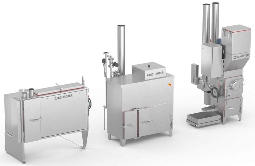 Ob mild oder kräftig geräuchert – verschiedene Produkte verlangen unterschiedliche Rauchintensitäten. Daher bietet Schröter im Produktbereich SMOKjet® vier Systeme für Heiß- und Kaltrauchanlagen an: Glimmraucherzeuger für Hackschnitzel und Sägespäne, Dampf- und Reibraucherzeuger sowie Flüssigrauchgeräte.