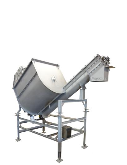 Hopper: Feeding the product into the screw conveyor, the Screw Conveyor has a Clean-Sweep system that elminate wste by mechanically clearing food products between batches.