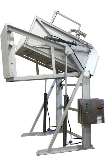 Also constructed with 304 stainless steel, the Pivot Dumper is a reliable, robust solution for dumping totes. Built for food safety and personnel safety, the DP3000 can be designed with a liner hold-down and pallet retention.