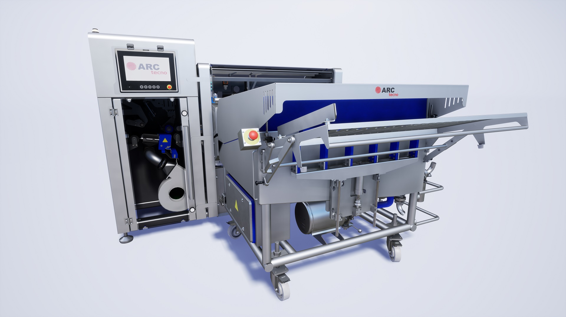 ARCtecno’s Automatic Plastic Casing Peeling Machine PTP1200 is our latest patented machinery development designed to remove the plastic casing from products such as cooked sausages, pet food sausages, alternative protein logs and mozzarella logs, among others.
