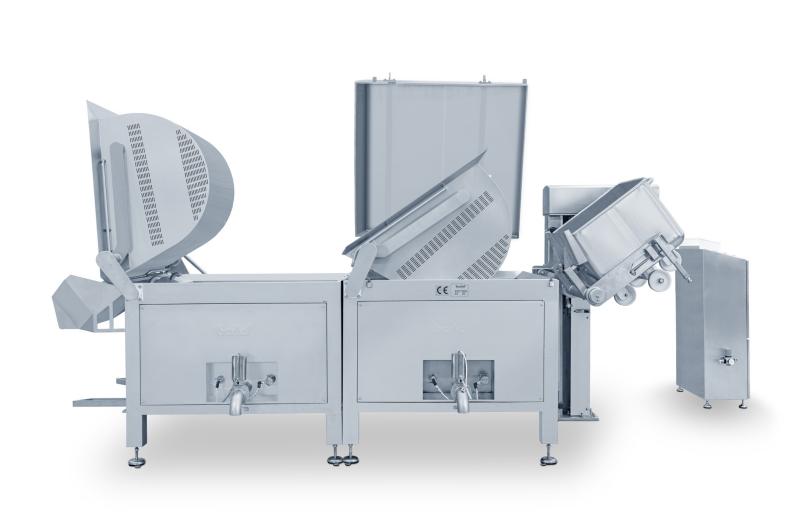 An essential success factor for industrial kitchens is the efficient flexibility, especially when smaller batches have to be produced. Therefore it is often not recommended especially in the ready meal sector to use continuous systems. The cooking kettle with slewing basket type HODAKO-S offers the possibility to blanch or cook smaller batches quickly and economically. The very fast heating behaviour offers the required flexibility in a kitchen. This is achieved by the heating with high-pressure steam. Due to a cascade arrangement of several kettles, a cooking-cooling process can be realised, one kettle being used as cooking kettle and the others a cooling kettle. The cooling is made directly with fresh and/or cooled water. The kettle is emptied into standard bins.