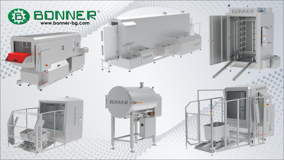 Bonner company produces machines and equipment for washing inventor from stainless steel AISI 304 (1.4301) They are produced in two types: pass-through and chamber.
