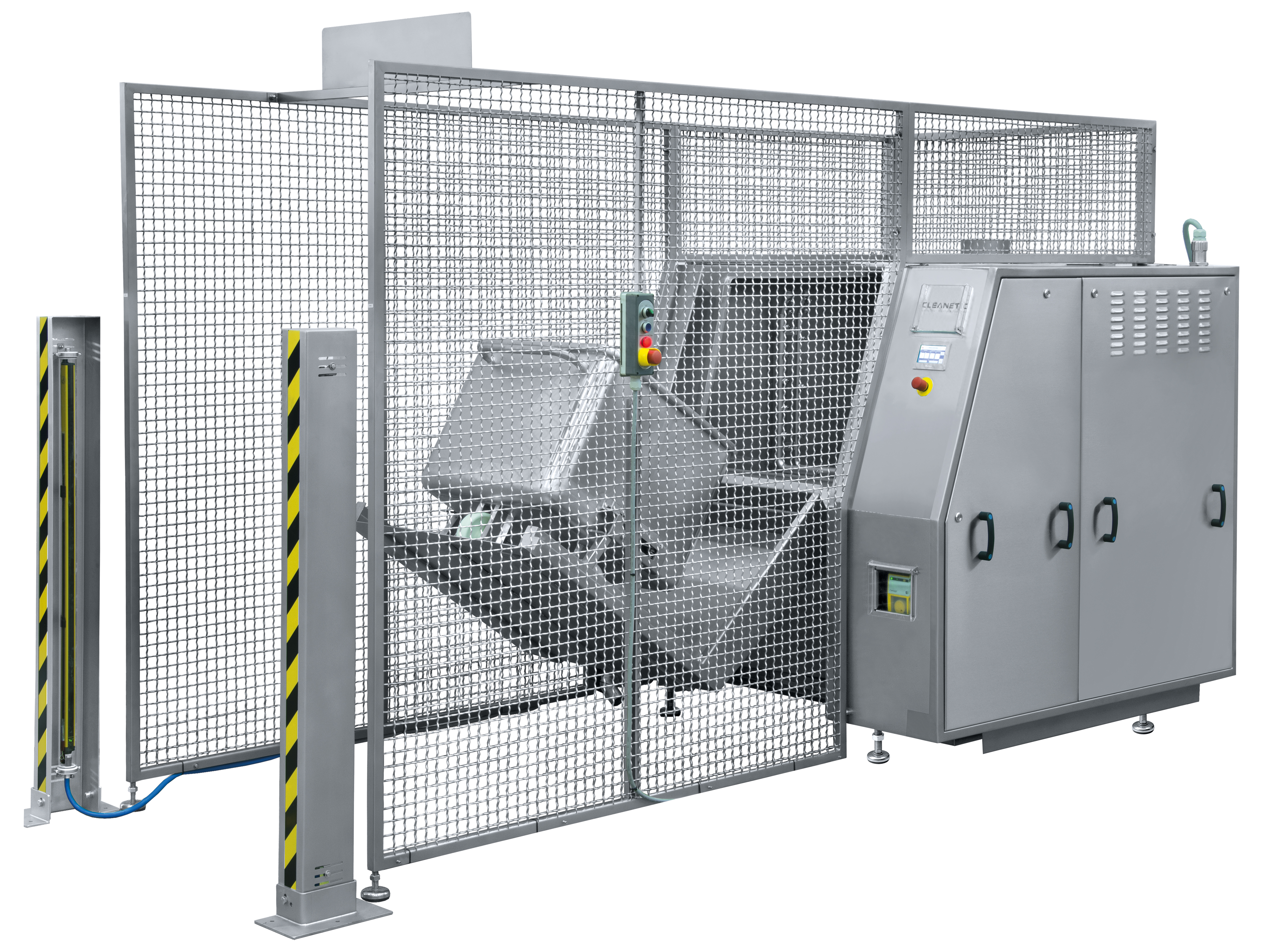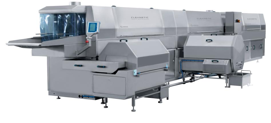 Cleanetic MPA-1200 high capacity automatic industrial container washers minimise consumption of media yet still maintain high wash quality.