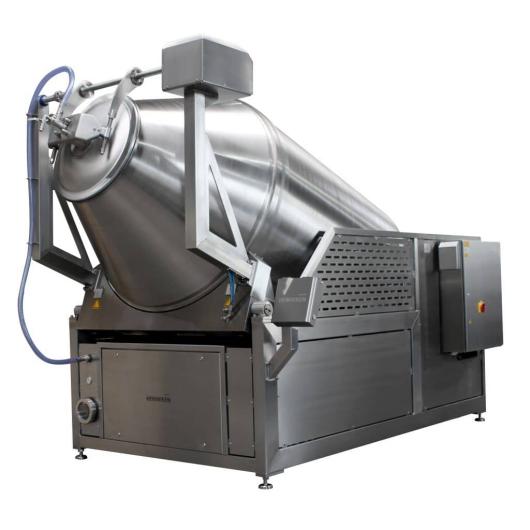 Remarkable about the vacuum tumbler type R is the lift-tilt system. With a tilt adjustment of 45° a filling volume of 60% can be guaranteed. Besides a quick emptying by tilting the container is possible.