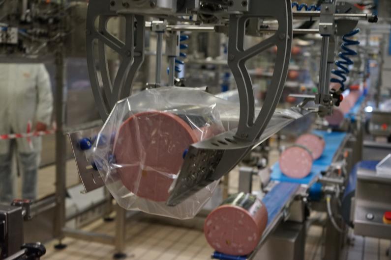Our extremely compact CONFSV vacuum bagging and packaging lines can use either aluminum bags, shrink bags or taped bags. Easy adjustments ensure excellent qualitative and quantitative results and the different models can produce from 360 to 720 pieces/hour. They are used for cooked or cured products, whole or in portions, for cheese and for vegetarian or vegan products.The automatic bagging machine receives the products, appropriately oriented, on its loading conveyor belt. The gusseted bags or the sacks, are stacked in a special adjustable warehouse, orientable, or with a double drawer to allow loading without stopping production, for greater productivity. The packaging machine feeds our vacuum thermosealing tunnel, with sealing bars of 1.4 m, 1.8 m and 1.95 m, with side-by-side resistances conformed in such a way as to ensure maximum sealing pressure which, in this way, is less sensitive to micro-folds and the presence of traces of product.For bagging, a special device makes it possible to give to the mouth the shape required for the best and most reliable vacuum sealing, without the need for personnel. This device can be adjusted according to the size of the product.