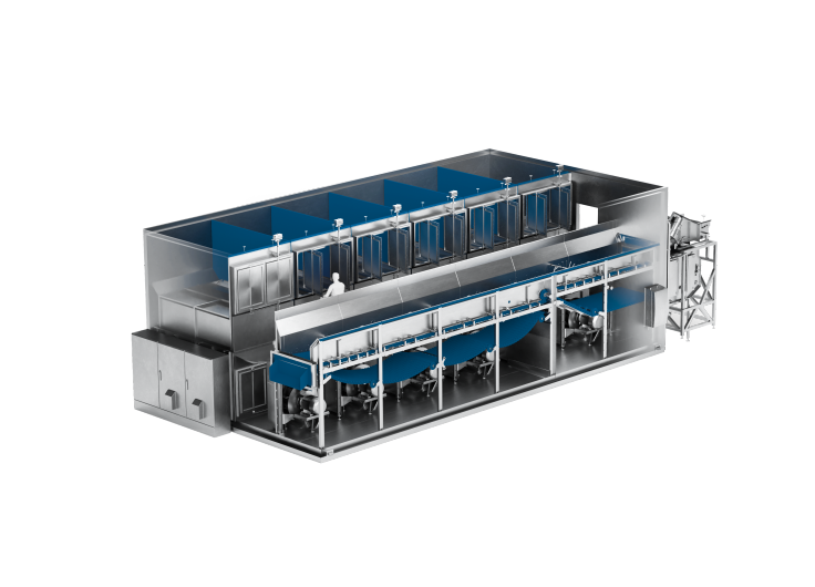 Due to the different number of modules in the pre-freezing and main freezing zone, the system can be designed exactly for the desired product and performance. Frequency-controlled drives provide the flexibility necessary to handle different products in a single system.