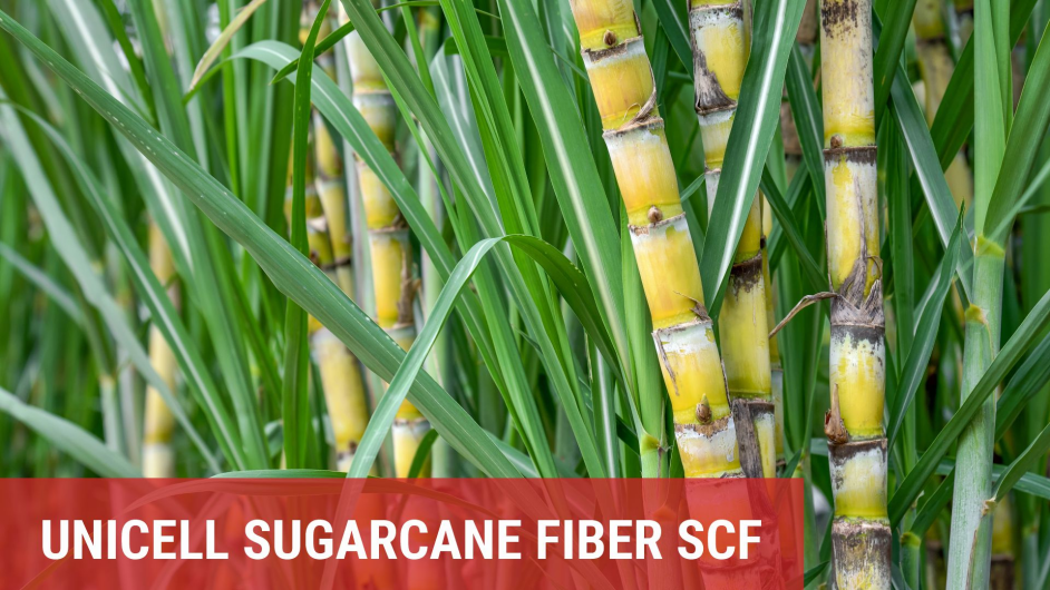 Unicell Sugar Cane Fiber SCF is derived from the dry cell wall or fibrous residue remaining after expression and extraction of sugar juice from sugar cane. These are available in five standard fiber lengths: 30, 75 90, 200 and 500 microns. Unicell Sugar Cane Fiber SCF can be used in wide variety of applications, including but not limited to, breads, bakery goods, meat and muscle products, seasonings and spices, grated cheeses, special diet foods, sauces, and beverages.