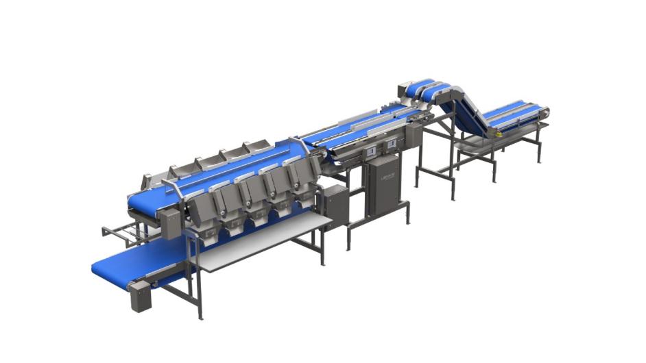 The Weight Grader Lenke CL3500 relies on the highest technology to meet the rigid demands of the food industry. The product is weighed at high speed on a conveyor belt and pneumatic arms located on the discharge conveyor sort products according to the weight range or to build a fixed weight batch.
