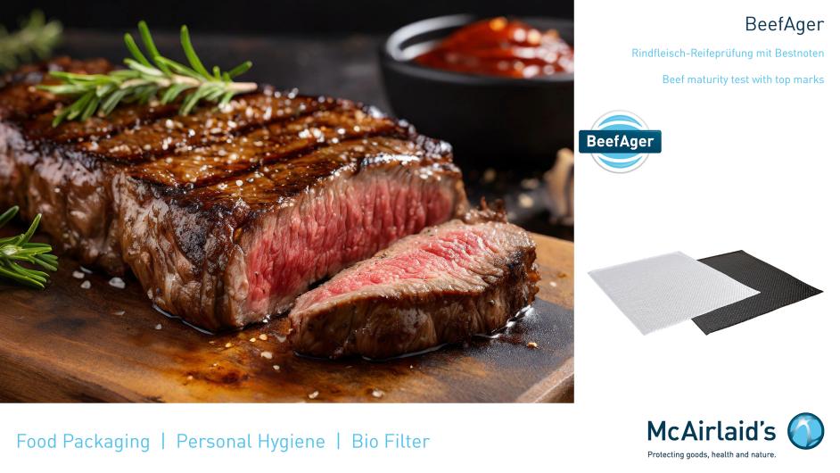 Thanks to the high-performance SuperCore absorbent core, the BeefAger pad actively optimises the beef maturing process. It offers the possibility to simulate a dry-aging process in vacuum packaging – with outstanding results.