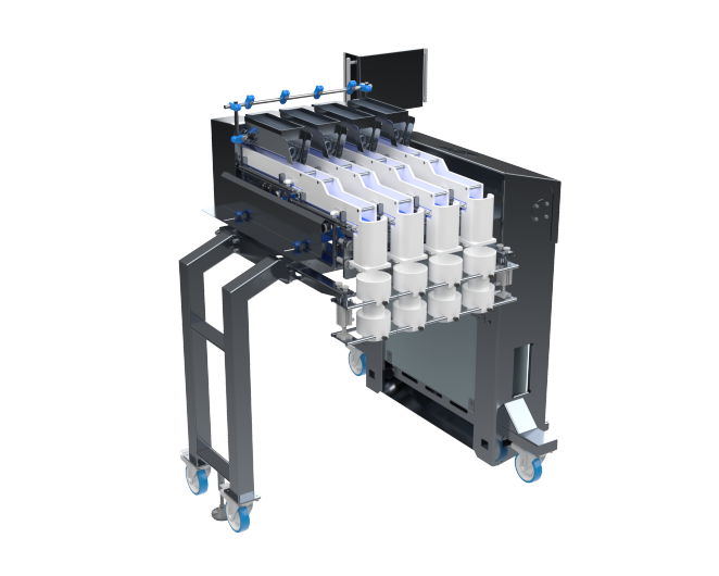 Has two levels of removable belts, which perfectly control the flow of the product and provide a precise weighing cycle. Controlled by touch screen, with a weight tolerance of +/- piece.