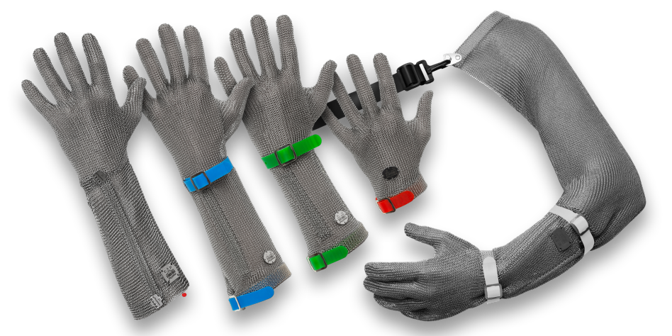 meshFlex® STANDARD - chainmail gloves with exchangeable plastic strap and detectable metal ring mesh