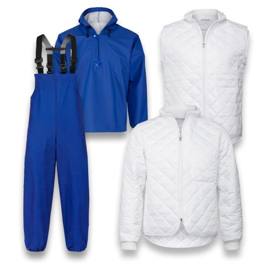 Premium wet-protection and cold protection clothing for the professional use in the food processing industry.
