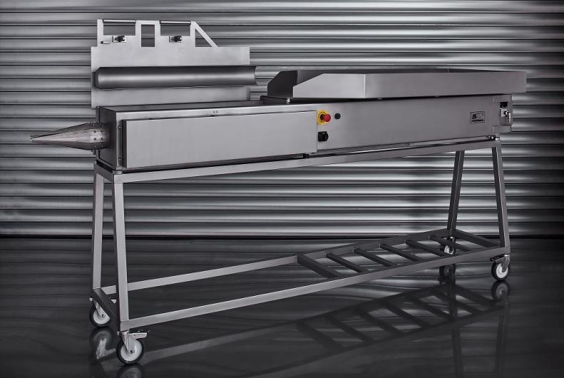 Electro-pneumatic operation, adjustable stroke speed, available as tabletop or wheeled base.