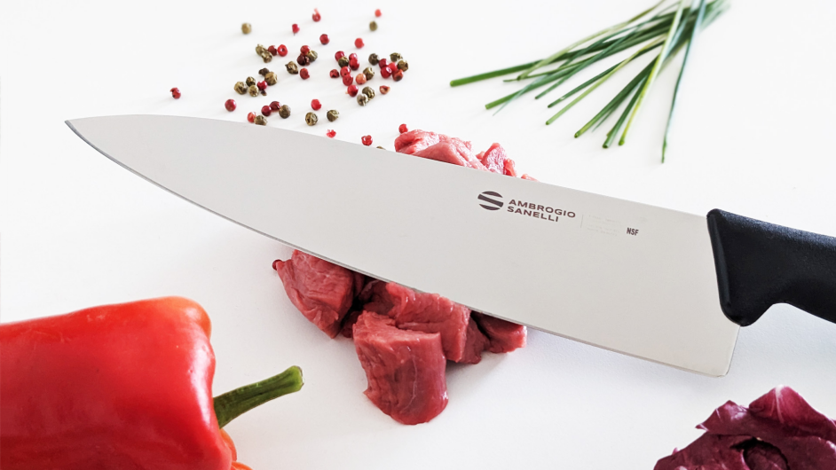 Ambrogio Sanelli Supra knives are expressly designed for professional use: high-quality blades are manufactured with special NITRO-B stainless steel with nitrogen (1.4916) and then combined with ergonomic handles in SEBS. All materials are sterilizable, highly resistant to impacts, corrosive agents and high temperatures, complying with EU regulations about food hygiene. The wide product range, together with safe use, functional shapes and exclusive design, make of the Supra knives essential work tools for chefs, butchers and all other professional users.
