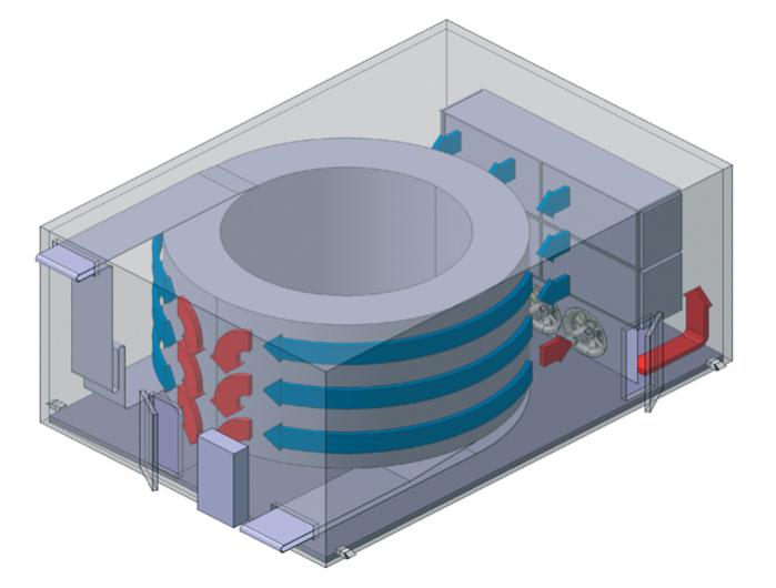 Scanico uses horizontal airflow in all our spiral systems which results in the quickest freezing time. With horizontal airflow you are independent of belt mesh density, product loading density and frost build-up, since the air skims the belt’s top and under the sides instead of going through the belt. Consequently, ventilator pressure can be reduced and energy consumption minimised. A unique air balance in the freezer and wide evaporator fin spacing enable long running time between defrosts. Depending on your product, the time between defrosts can be as long as one week.