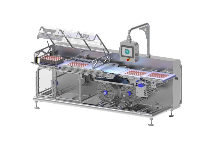 This all-rounder can easily process products with different product dimensions at different speeds. For example; 750 hamburgers/min. or 110 layout bacon sheets/min. It is a stand-alone machine that can communicate with any other machine up and downstream with its unique control program.