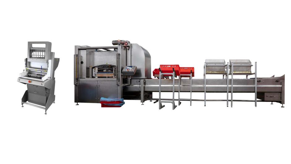 Two master stations are occupied by on the one hand the machine’s operator and on the other hand a team that fills the moulds with ingredients.