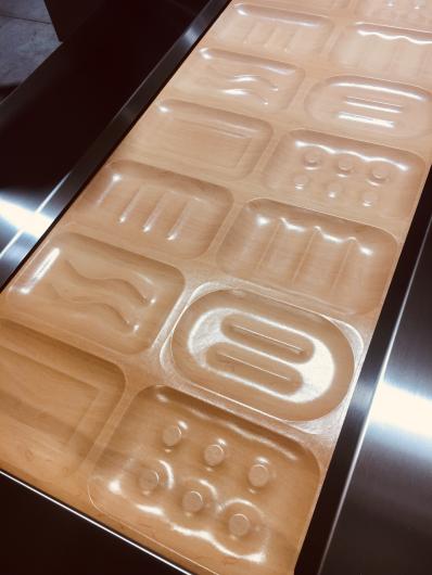 Bespoke, noble materials. Detailing beyond compare.Forming station, tray filling, vacuum / MAP, sealing and cutting stations are the rock solid hardware of each thermoforming machine.Entire in-house manufacturing process with premium raw materials through high performance tooling equipment, vanguard electronic software, hand-made electric assembly and marathon trials gateway: the outcome is a heavy-duty thermoforming machine that withstands the most difficult environmental conditions.AISI 304L and 316L stainless steel, high-precision calibration systems, flatness measurement of every single detail and thermodynamic stress tests are the foundation of our quality control, to ensure total reliability.The digital touch screen technology allows a simple and intuitive setting of the thermoformer, and production itself can be checked through management board integrated with brushless motors to ensure a precise and silent performance.It’s all about the cutting: the sharpest knives will reveal a bulletproof-dropout: never such a perfection of the shape could be achieved without the maniacal seeking of excellence. We make it happen.