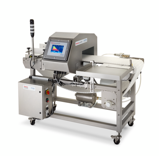 The Thermo Scientific Sentinel Metal Detectors utilize advanced Multiscan technology to enhance the detection of metal contaminants in products. These detectors can scan up to five user-selectable frequencies ranging from 50 to 1000 kHz, significantly increasing the probability of identifying metal contaminants that might be missed by traditional single or dual-frequency detectors. The Sentinel series offers high sensitivity, detecting contaminants up to 70% smaller in volume compared to previous models.Key features include a high-intensity color touchscreen, easy-to-use software with setup wizards, and a robust construction suitable for harsh environments. The detectors are designed for various applications, including food safety and quality assurance, and can be integrated with different conveyor systems worldwide. Optional features like a polycarbonate flip-up cover and high-temperature liners are available to enhance durability and functionality.