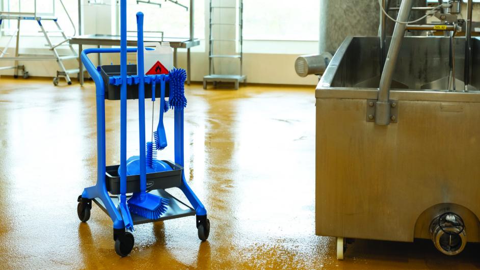 Vikan’s HyGo is the food and beverage industry's first mobile cleaning station to combine hygiene, efficiency, and maneuverability in a purpose-built solution. Beyond elevating cleaning efforts, HyGo also conquers space challenges, lost equipment, and wasted time. HyGo easily navigates tight spaces like doorways with its narrow frame and 360-degree wheels.The tool modules and brackets can be customised and can adapt as your needs change. As standard, the tool brackets can mount up to five tools. With additional brackets purchased and added to it, the HyGo can hold up to 12 mounted tools. The two rear castors can be locked. The upper tray can carry up to 12 kgs and the lower tray can carry up to 20 kgs. HyGo can be disassembled, and the individual parts can be dry cleaned or wet cleaned.