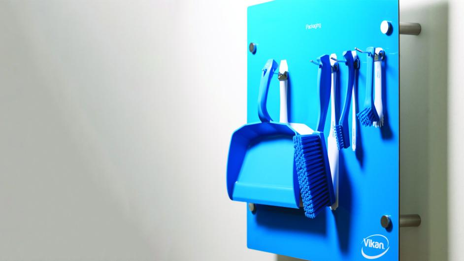 Shadow boards are an effective and affordable way to ensure audit-compliant “5S” storage of your Vikan cleaning tools. This organisational system makes it easier to stay on top of inventories and keep the auditors satisfied. With colour-coded options for hygienic segregation, these boards help keep your tools organised, clean, and in good condition – saving you time and money every day.