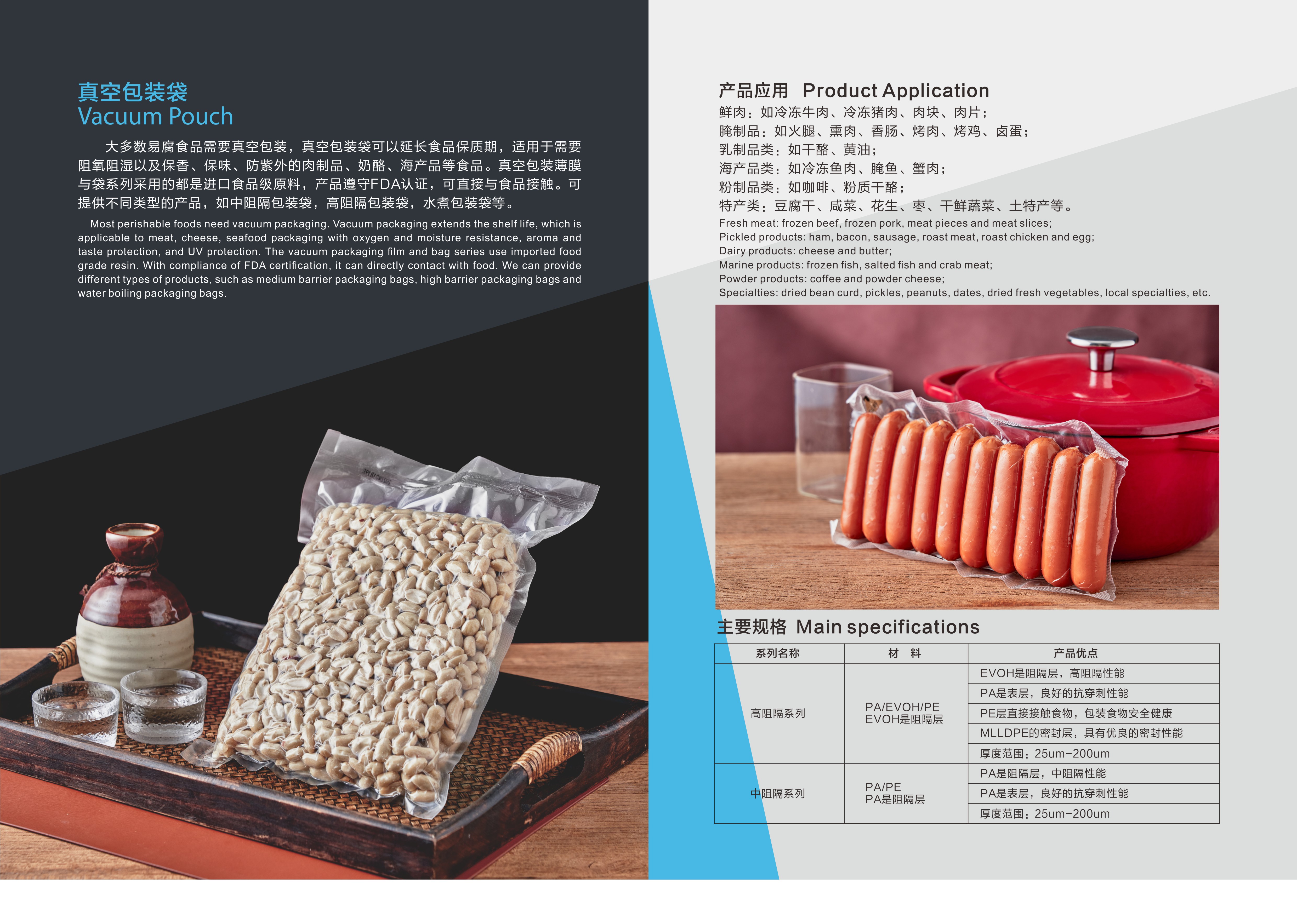 The vacuum packaging bag is an important barrier to protect the product from the external environment, extend the fresh life of food, and maintain food quality and taste.